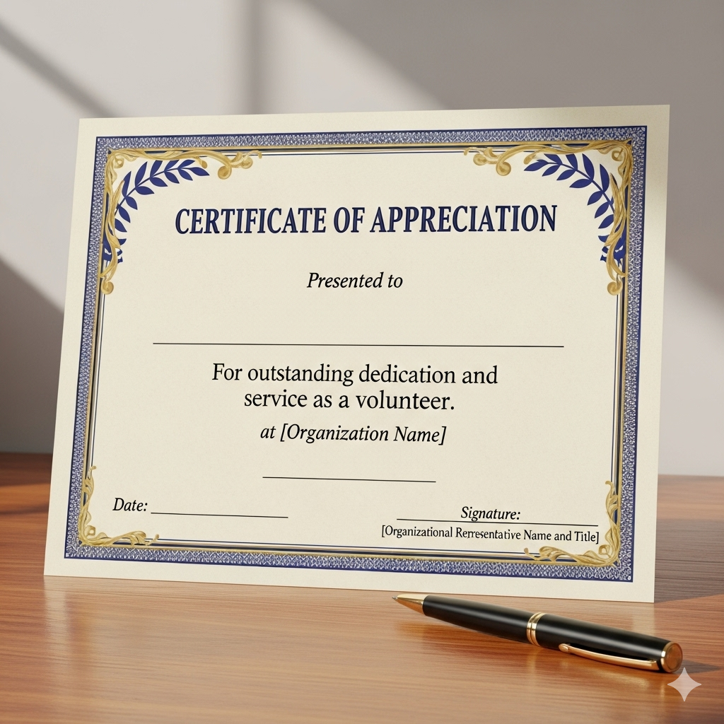 This certificate is awarded to [Volunteer's Full Name] for their outstanding dedication and service as a volunteer. In grateful recognition of 7 days of commitment and support from [Start Date] to [End Date], we acknowledge your invaluable contributions to [AMBLS Foundation]. Your efforts in [Briefly describe their volunteer role or specific tasks, e.g., "assisting with our annual community outreach program" or "supporting our event registration and setup"] have made a significant positive impact. Presented on this [Date of Issuance] by: